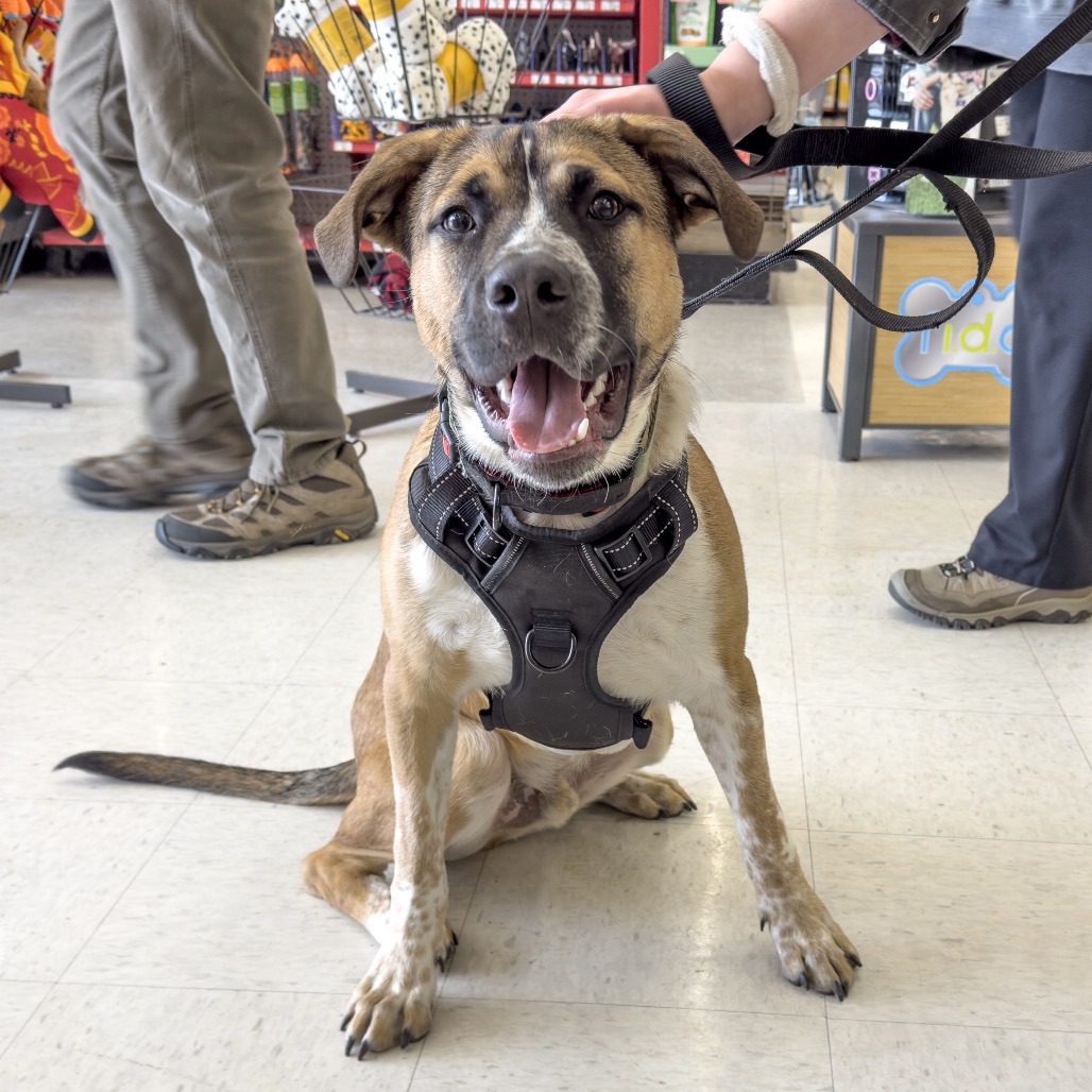 I’m a little puppy at heart, but people tell me I'm not so little anymore. They tell me I am a giraffe puppy with looong legs and kind of clumsy while I learn to use them. I love my human foster family, and whenever foster mom and her kids are around all I want to do is play with them! But I am looking for a forever home with other dogs my size I can play with. My foster home has all the things I love, and I know that your home does too: