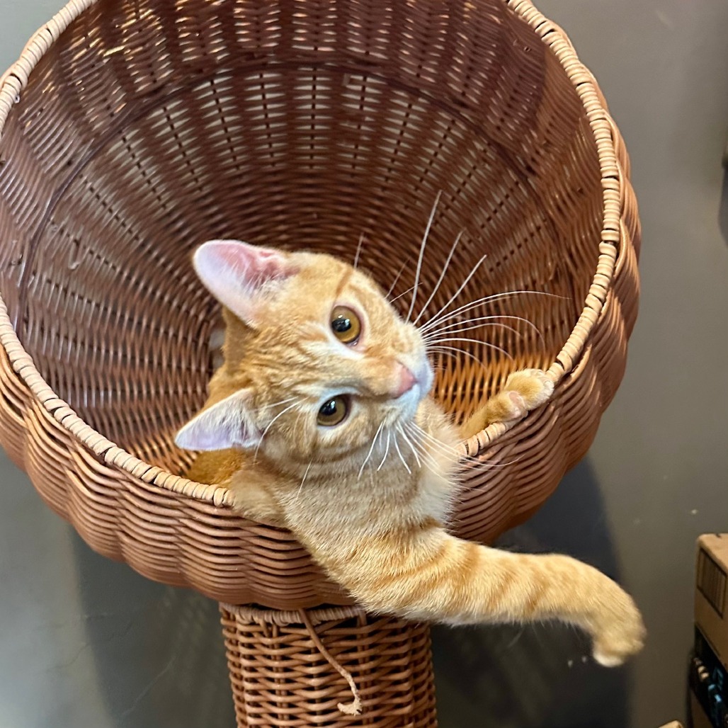 Coral is beautiful, with slightly lighter orange fur than her siblings. If she’s taking a nap, she’s doing it in the sink, every time - even if she has lots of fluffy cat beds available to her. She even sleeps in the sink overnight! Coral is fine with medium/large dogs and adult cats. Coral is easygoing and laid back. She would likely adapt to anything if she had vertical space (cat tree, bookshelf, etc.) to escape to. Having vertical space will be important to helping her feel safe & settled. She’s gentle and low energy for a kitten. She loves to be in the mix of things, but will likely stay on the fringes at first until she gets more comfortable.
