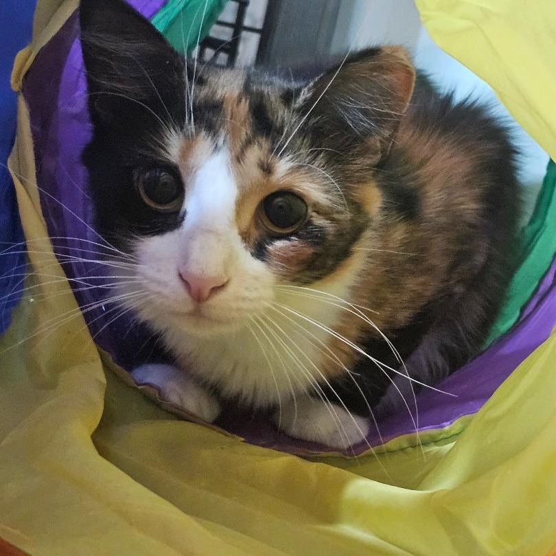 Meatloaf is still a bit skittish but she loves to be petted. She likes to play with toys. It's so much fun watching her blossom!